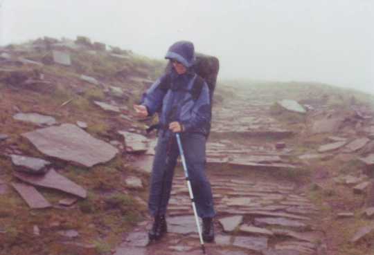 | Op weg naar Pen y Fan ( 883 meter) | Eerst nog even een glibberige afdaling |