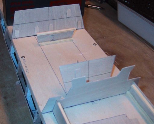 | De eerste schotten voor het stuurhuis | Opbouw achterdekhuis |